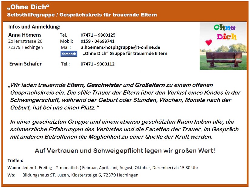 TRAUER "Ohne Dich" Selbsthilfegruppe und Gesprächskreis für trauernde Eltern